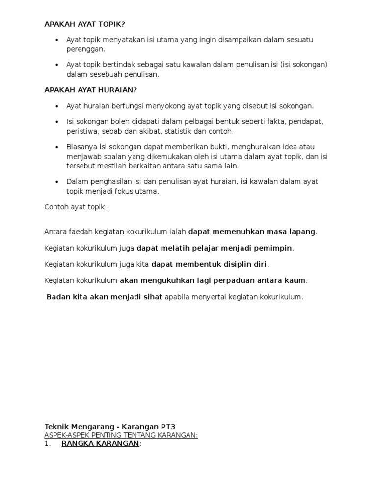 Contoh Ayat Topik Ayat Huraian Ayat Contoh